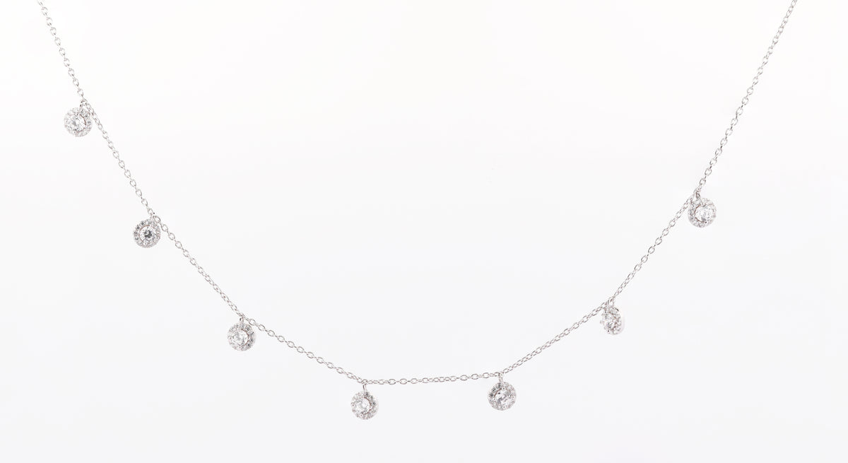 92.5 Sterling Silver Dangling Bezel Charm Chain Pendant 13262 - Rhodium / White / 3.41