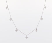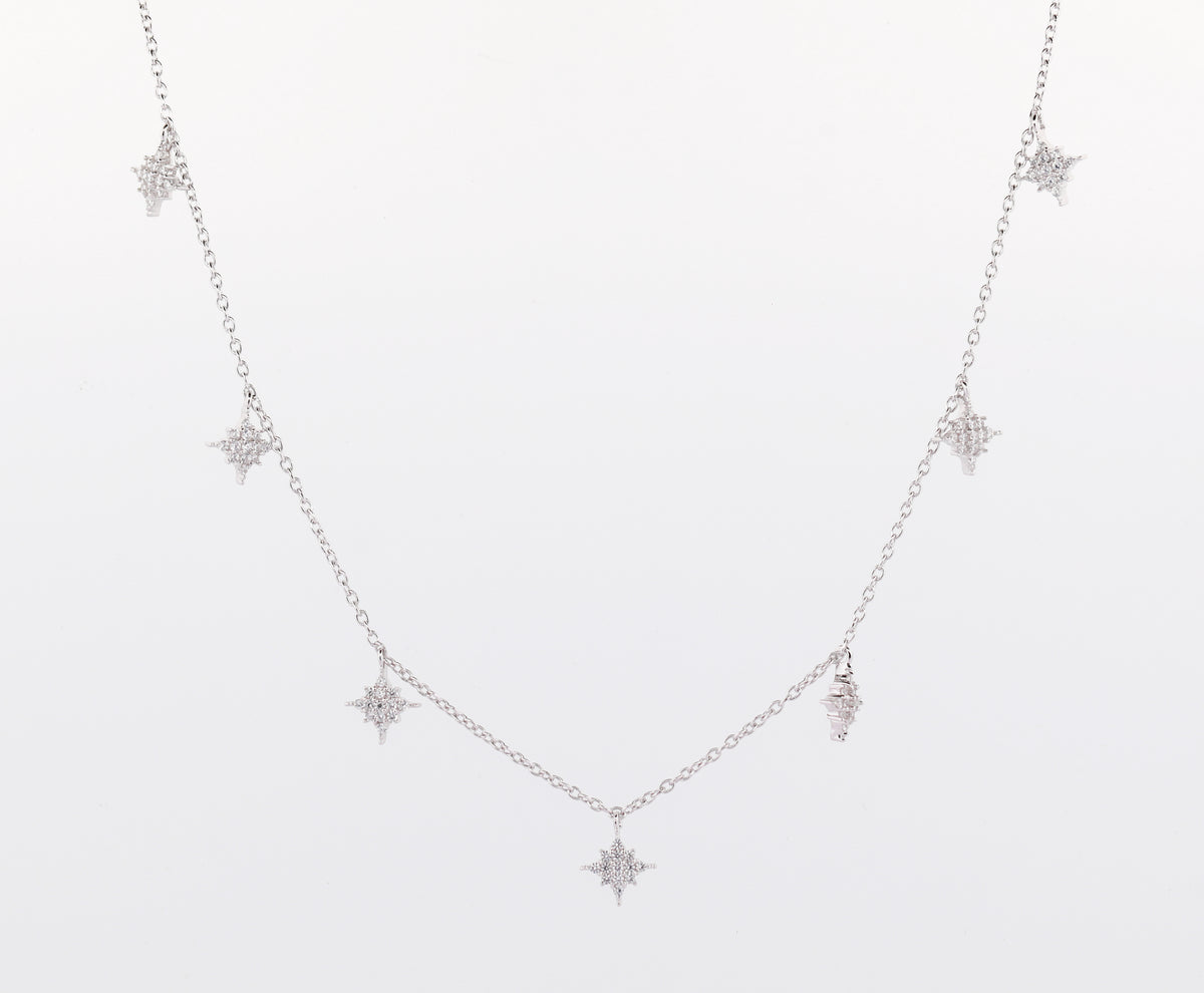 92.5 Sterling Silver Star Charm Chain Pendant 13263 - Rhodium / White / 3.16