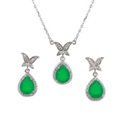 92.5 Sterling Silver Green Teardrop Butterfly Chain Pendant Combo Set 15833 - Rhodium / Green / 13