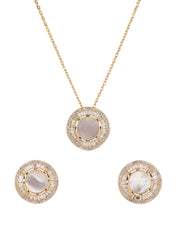 92.5 Sterling Silver Radiant Mother of Pearl Halo Chain Pendant Set 12399 - Gold / White / 7.17