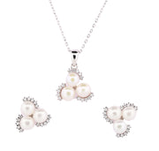 92.5 Sterling Silver Triple Pearl Cluster Chain Pendant Set 15547 - Rhodium / White / 5.61