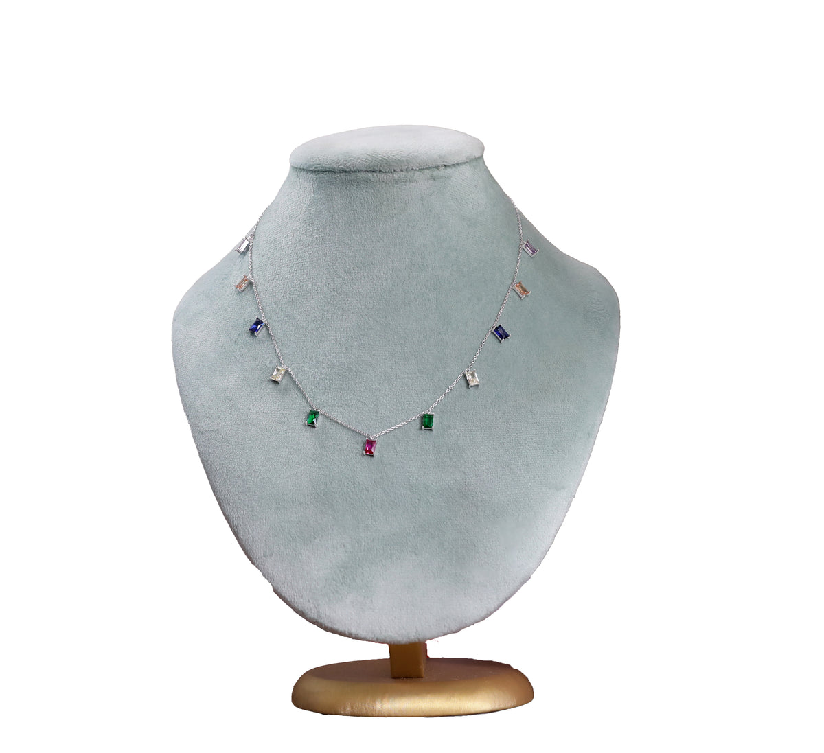 92.5 Sterling Silver Classic Baguette Charm Chain Pendant 18903 - Rhodium / Multi / 5.07