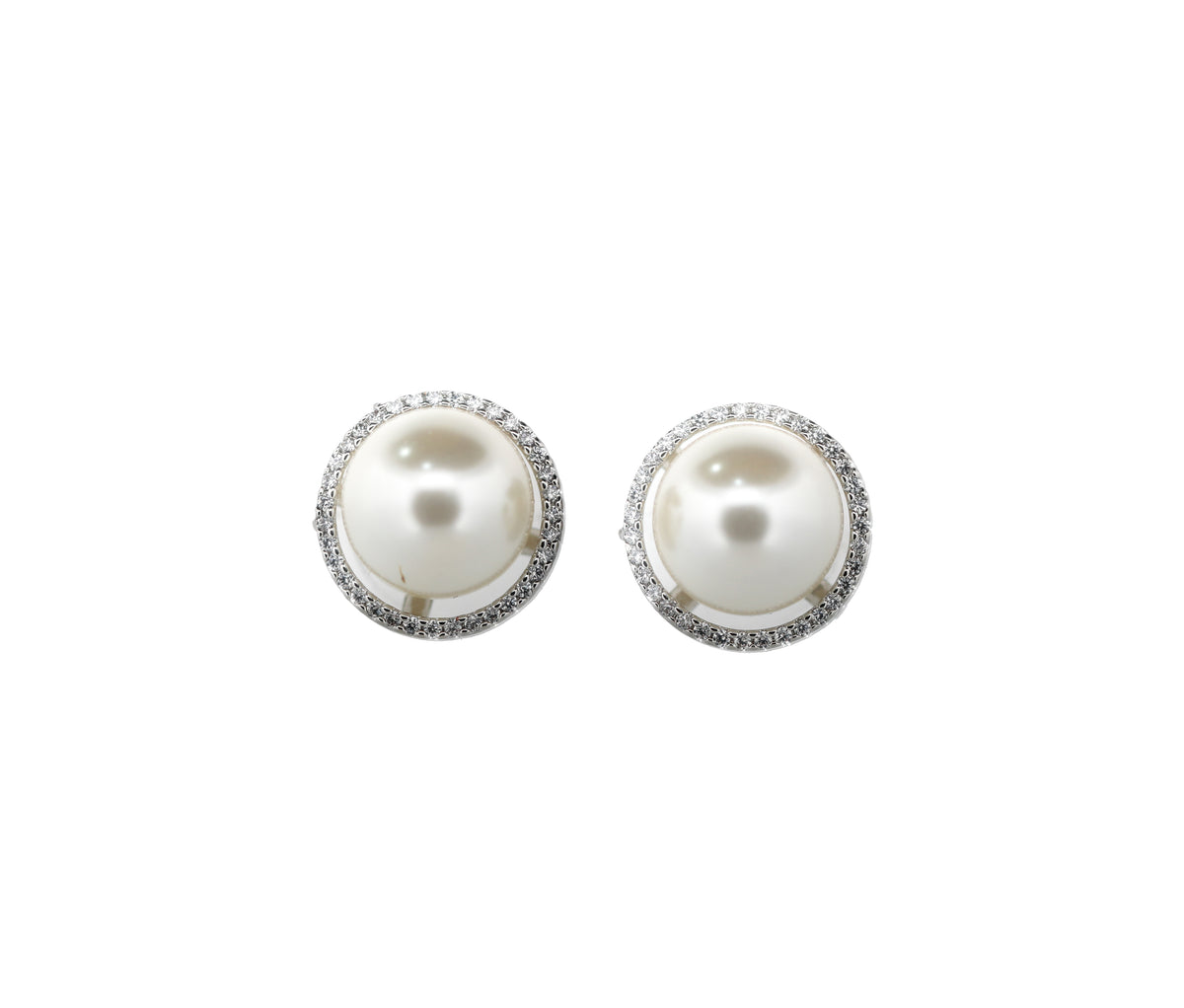 Zircon Halo-Set Round Pearl Tops 11867 - Rhodium / White Moti