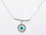 92.5 Sterling Silver Celestial Evil Eye Sparkle Chain Pendant 12140 - Rhodium / Evil Eye / 4.5