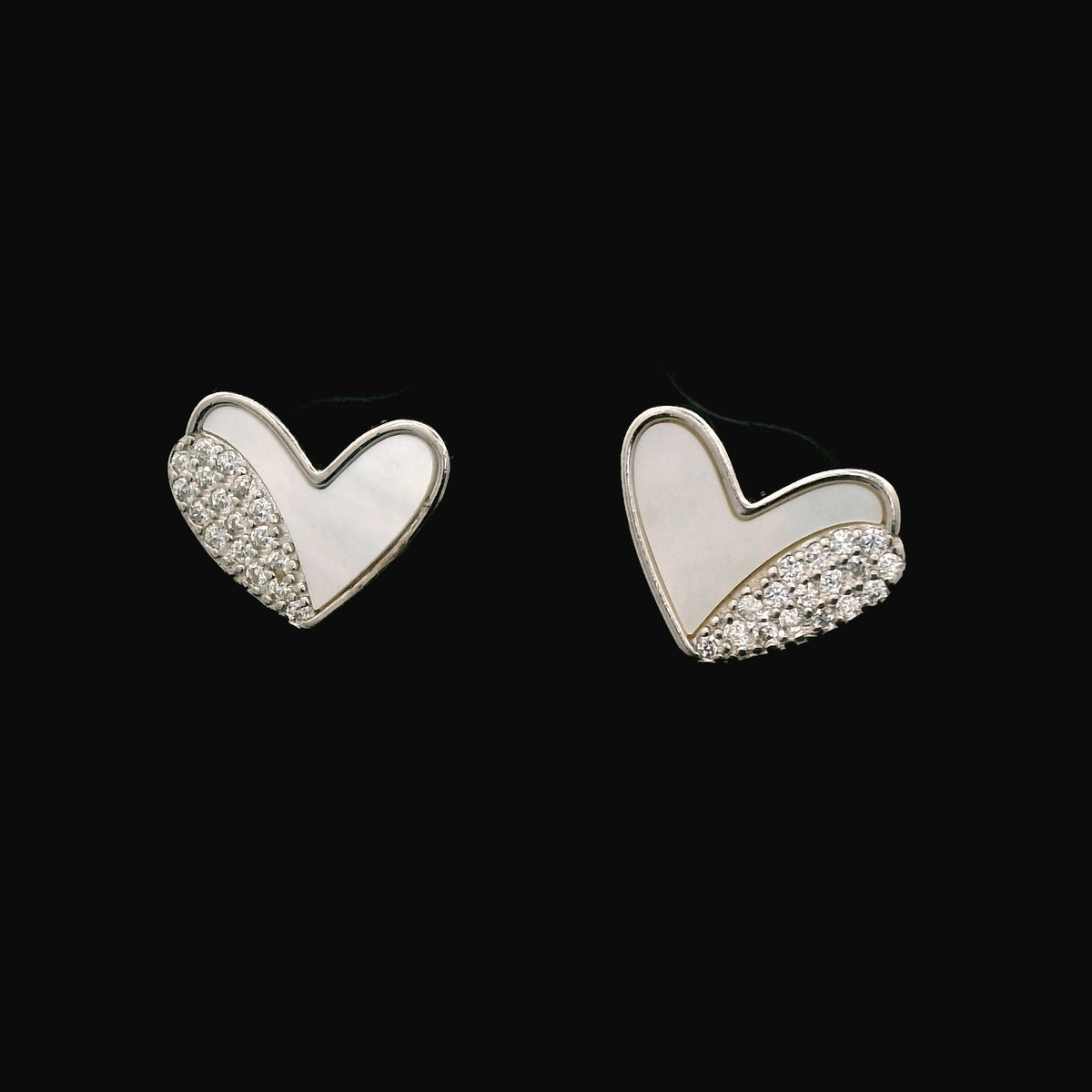 92.5 Sterling Silver Glow Heart Duo Earrings 18409 - Rhodium / White / 1.83