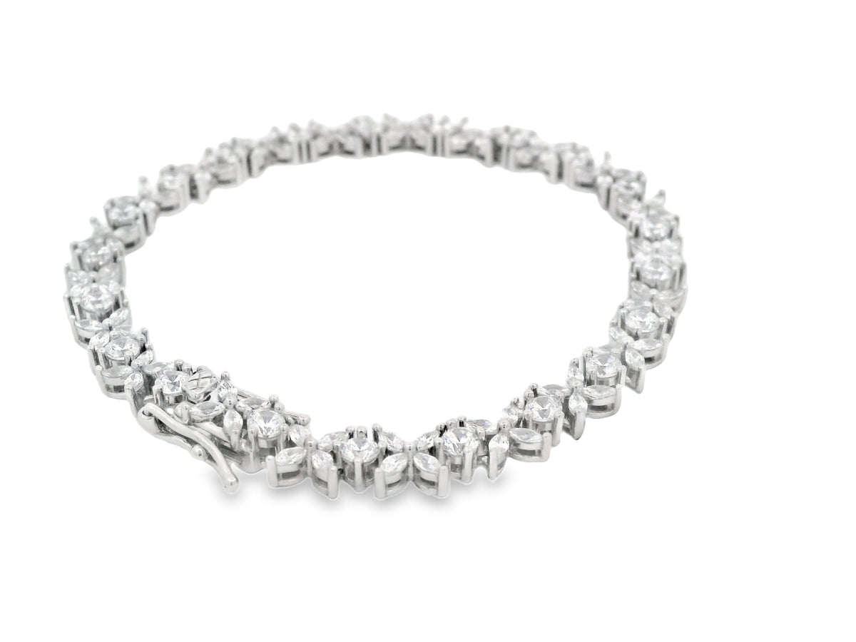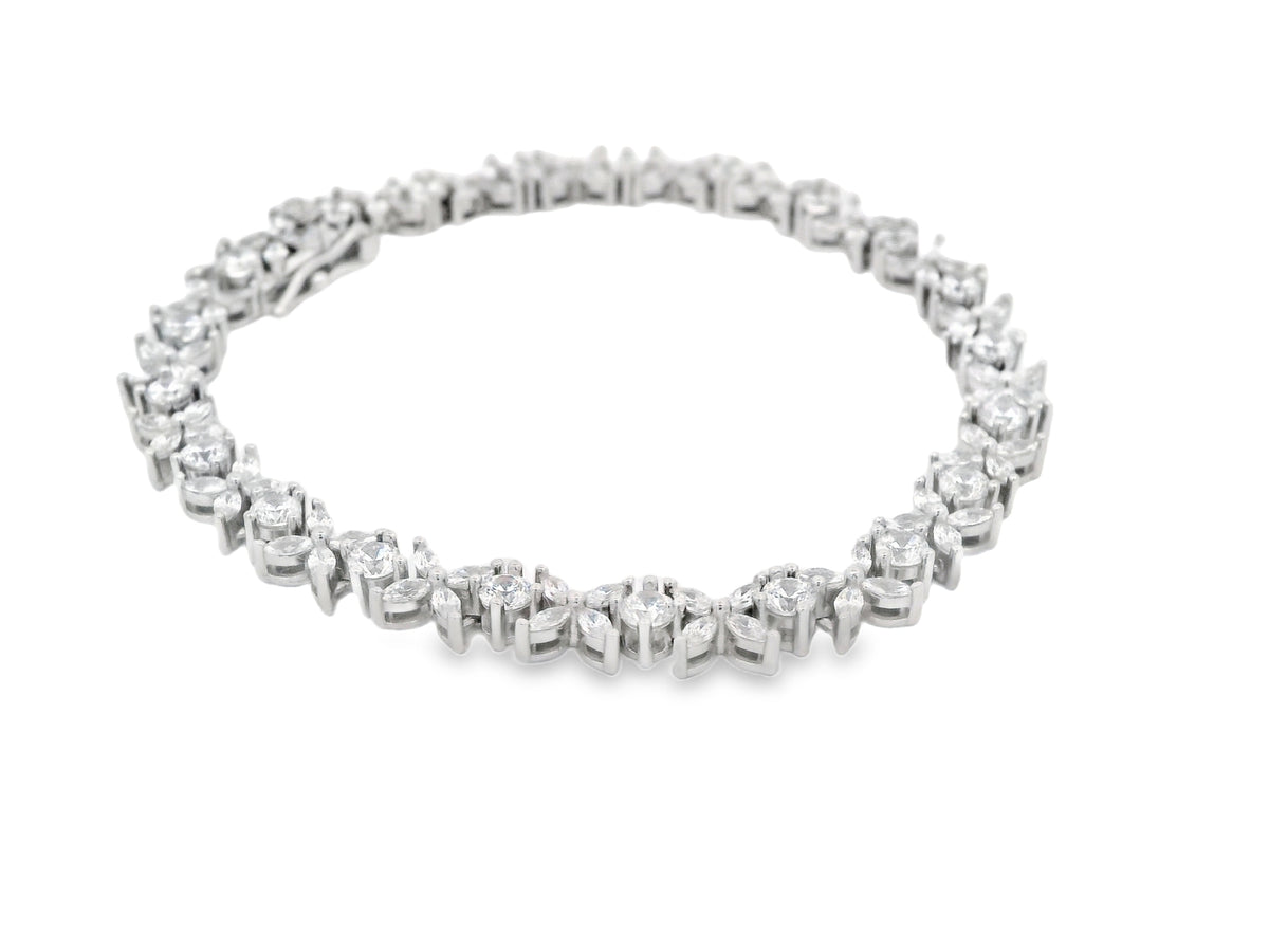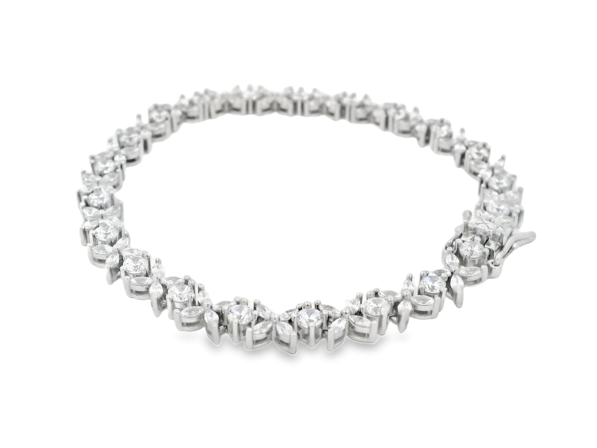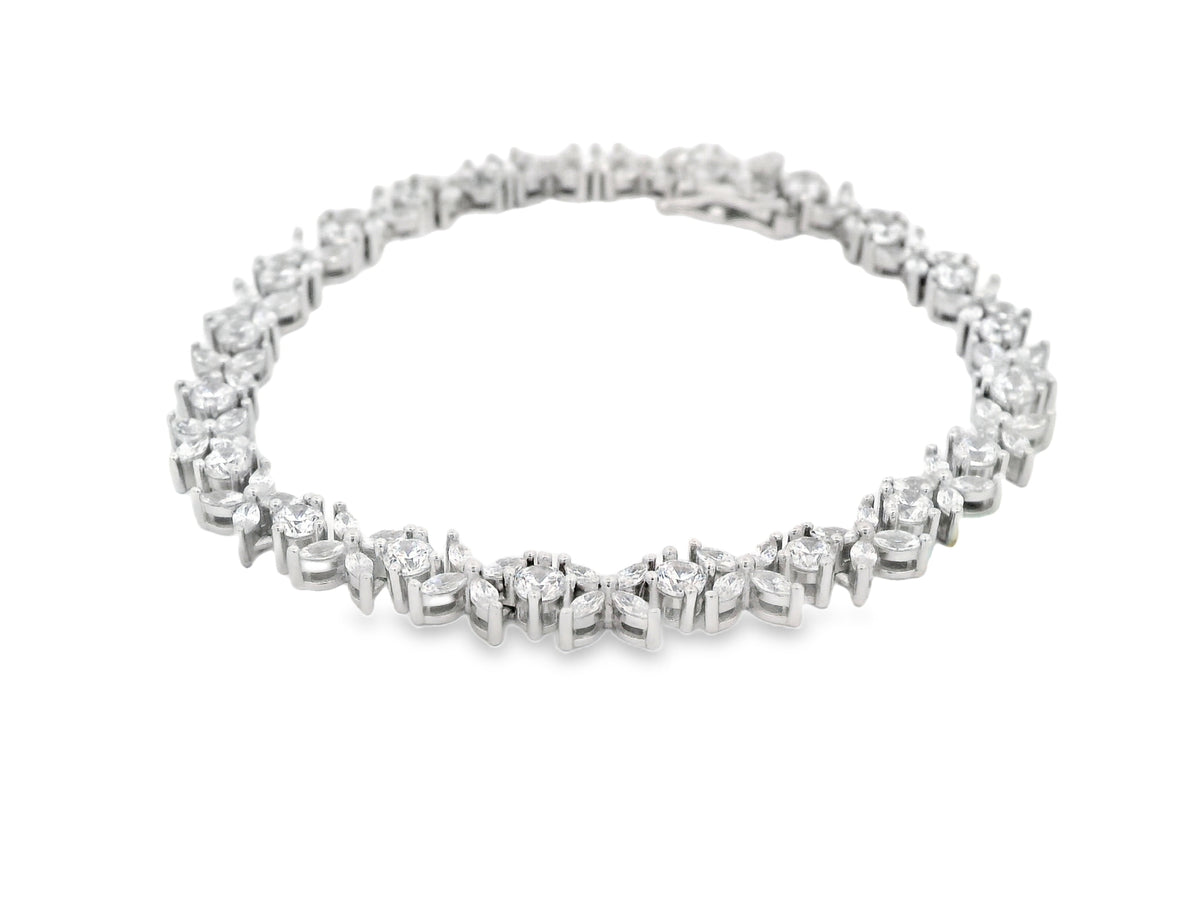 92.5 Sterling Silver Bloom Cluster Line Bracelet 25880 - Rhodium / White / 11.84