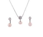 92.5 Sterling Silver Sleek Bezel Pearl Drop Chain Pendant Set 18240 - Rhodium / White / 5.9